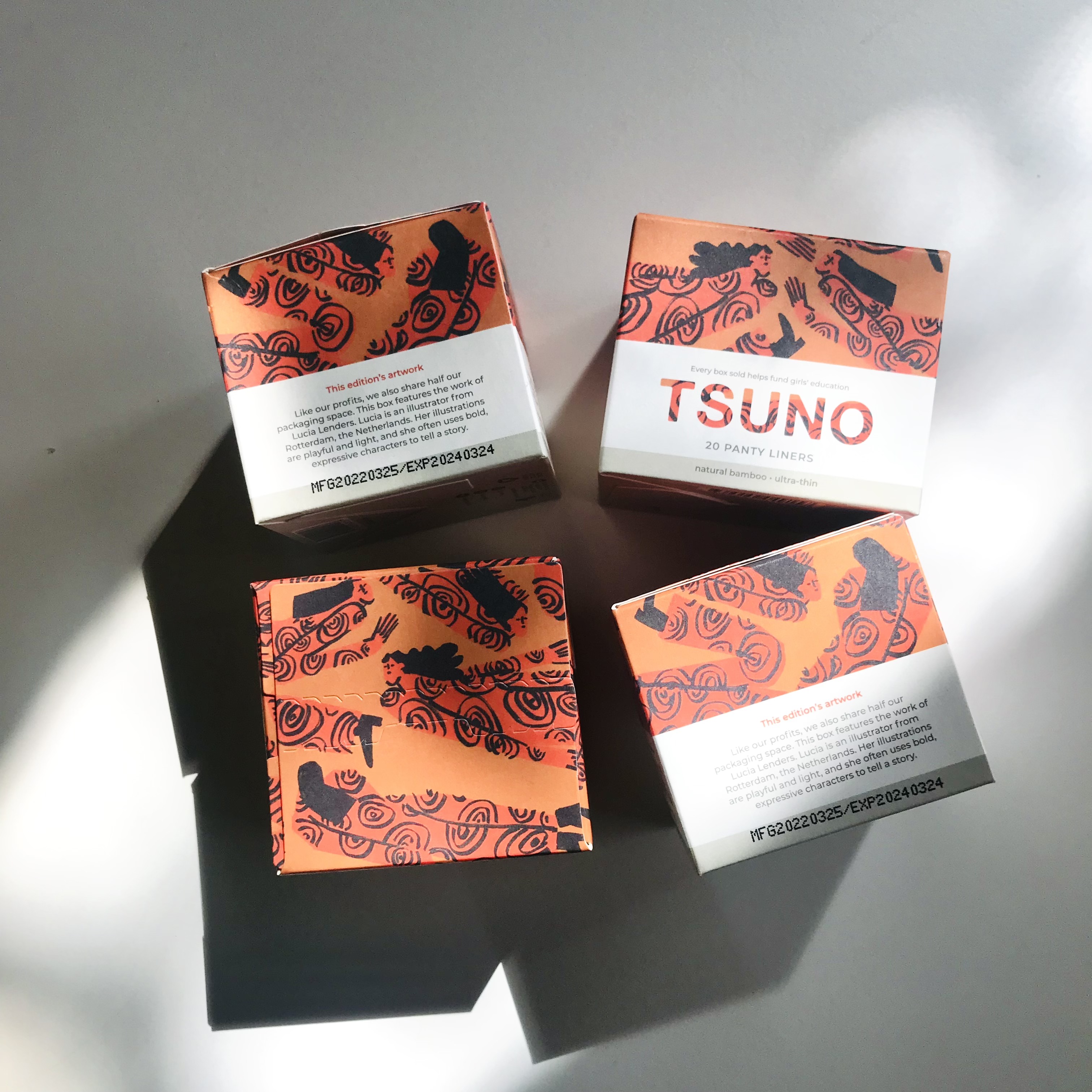 Tsuno is an ethical, Australian brand that produces sustainable period products. 50% of their profit goes to charities that focus on empowering women, especially education and menstrual products. That’s why I was extra proud to design one of their packages, with an illustrated pattern of peacefully floating (or flying?) women.